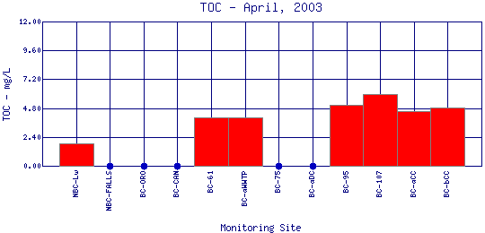 Longitudinal Total Organic Carbon Profiles for April, 2003