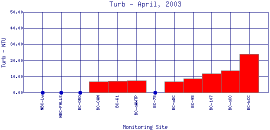 Longitudinal Turbidity Profiles for April, 2003