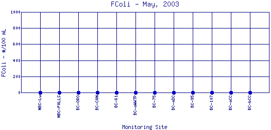 Longitudinal Fecal Coliform Profiles for May, 2003