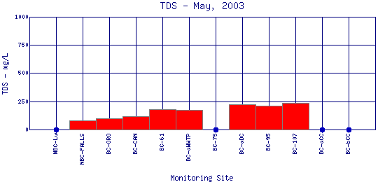 Longitudinal Total Dissolved Solids Profiles for May, 2003