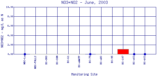 Longitudinal Nitrate + Nitrite Profiles for June, 2003