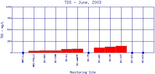 Longitudinal Total Dissolved Solids Profiles for June, 2003
