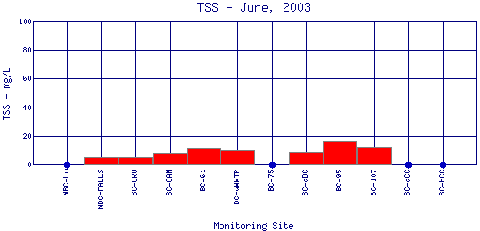 Longitudinal Total Suspended Solids Profiles for June, 2003