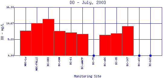Longitudinal Dissolved Oxygen Profiles for July, 2003