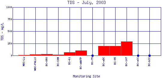 Longitudinal Total Dissolved Solids Profiles for July, 2003