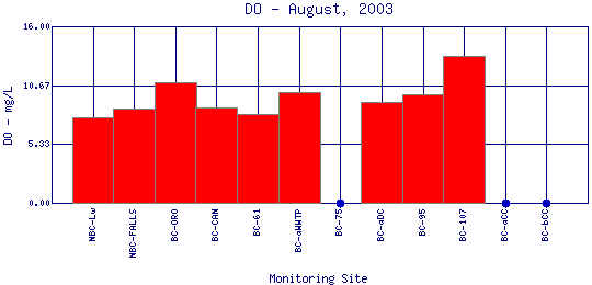 Longitudinal Dissolved Oxygen Profiles for August, 2003