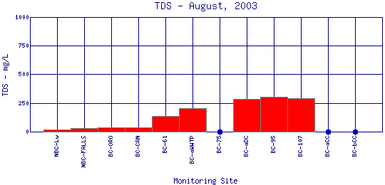 Longitudinal Total Dissolved Solids Profiles for August, 2003