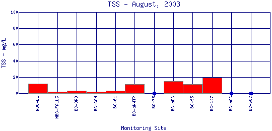 Longitudinal Total Suspended Solids Profiles for August, 2003