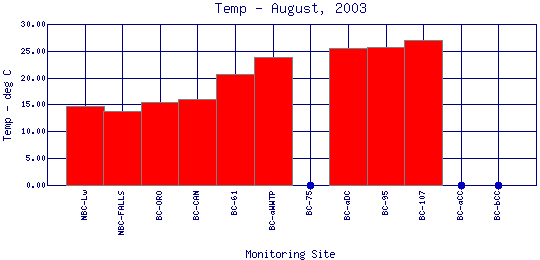 Longitudinal Water Temperature Profiles for August, 2003