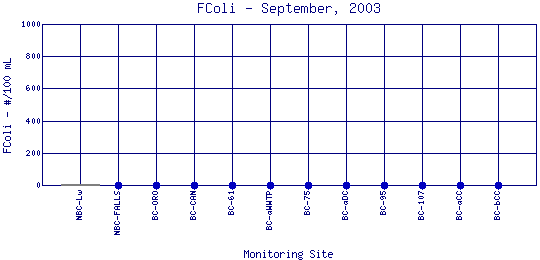 Fecal Coliform Bacteria is found in the intestinal tracts of mammals. High concentrations of the bacteria in water or sludge suggest the presence of disease-causing organisms, and may be caused by septic tank failure, poor pasture and animal keeping practices, pet waste, and urban runoff. To measure fecal coliform bacteria, water samples are collected in sterilized containers, filtered, and incubated at a certain temperature. The resulting bacterial colonies that form are counted and recorded as the number of colony producing units per 100 ml of water (CPU/100 ml). Safe drinking water should have fecal coliform counts of 0 CPU/100 ml. For safe swimming, concentrations less than 200 CPU/100 ml is desirable, and for boating, less than 1000 CPU/100 ml is desirable. However, these standards may vary at the local, state, and federal level. | |||||||||||||||||||||||||||||||||||||||||||||