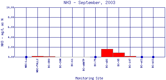 The above map indicates water quality monitoring sites. To view data at a specific site select it from the map with the mouse.