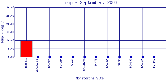 The above map indicates water quality monitoring sites. To view data at a specific site select it from the map with the mouse.