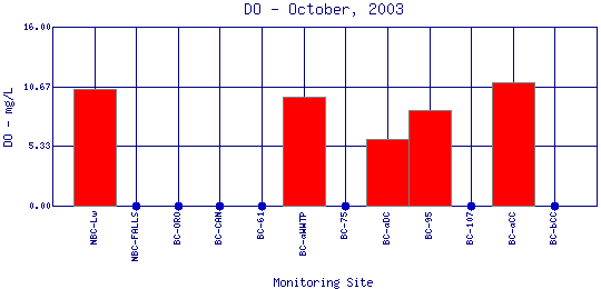 Longitudinal Dissolved Oxygen Profiles for October, 2003