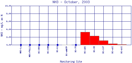 The above map indicates water quality monitoring sites. To view data at a specific site select it from the map with the mouse.