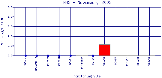 The above map indicates water quality monitoring sites. To view data at a specific site select it from the map with the mouse.