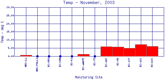 Longitudinal Water Temperature Profiles for November, 2003