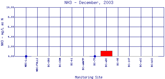 The above map indicates water quality monitoring sites. To view data at a specific site select it from the map with the mouse.