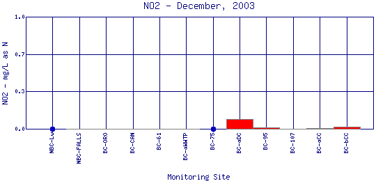 The above map indicates water quality monitoring sites. To view data at a specific site select it from the map with the mouse.