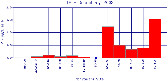 The above map indicates water quality monitoring sites. To view data at a specific site select it from the map with the mouse.