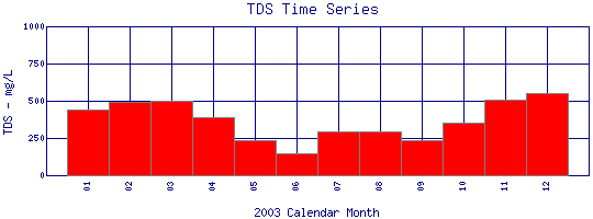 Total Dissolved Solids Time Series for 2003 Boulder Creek at 107th St |