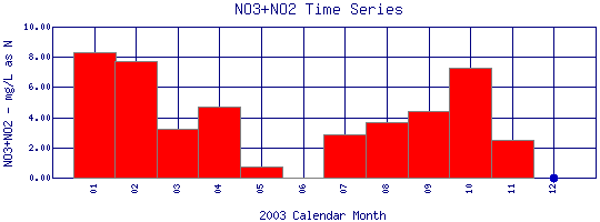 Nitrate + Nitrite Time Series for 2003 Boulder Creek at 95th St |