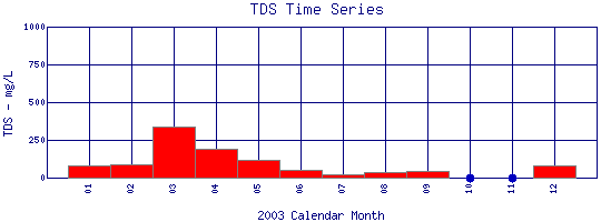 Total Dissolved Solids Time Series for 2003 Boulder Creek at Eben G. Fine Park |