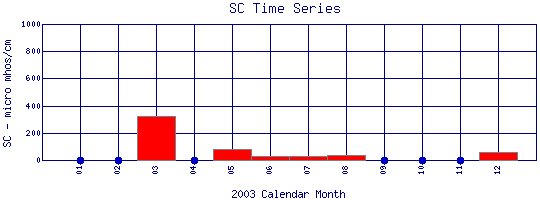 Specific Conductance Time Series for 2003 Boulder Creek at Orodell |