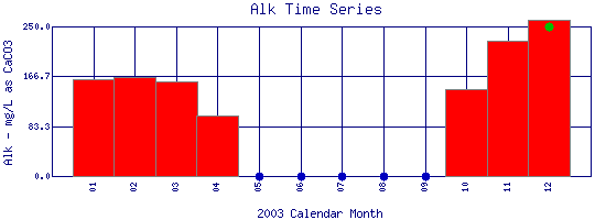 Total Alkalinity Time Series for 2003 Boulder Creek Above Coal Creek |