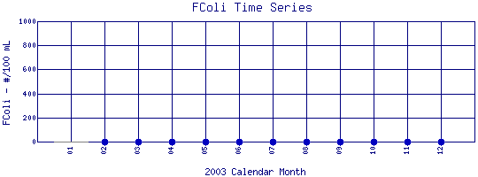 Fecal Coliform Time Series for 2003 Boulder Creek Above Coal Creek |