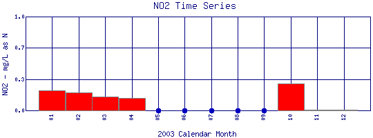 Nitrite Time Series for 2003 Boulder Creek Above Coal Creek |