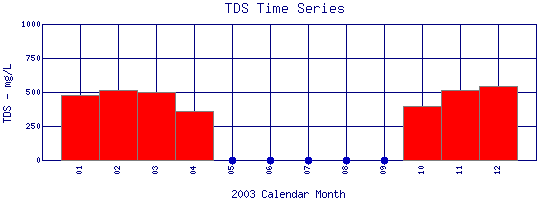 Total Dissolved Solids Time Series for 2003 Boulder Creek Above Coal Creek |