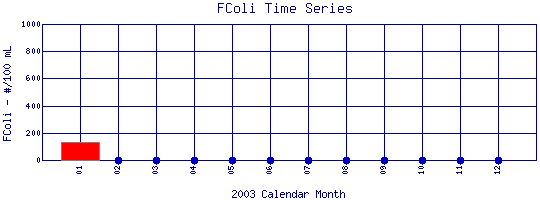 Fecal Coliform Time Series for 2003 Boulder Creek above Dry Creek |