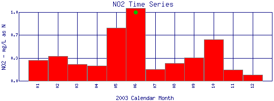 Nitrite Time Series for 2003 Boulder Creek above Dry Creek |