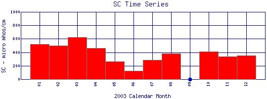 Specific Conductance Time Series for 2003 Boulder Creek above Dry Creek |