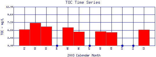 Total Organic Carbon Time Series for 2003 Boulder Creek above Dry Creek |