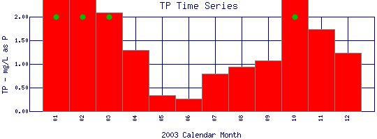 Total Phosphate Time Series for 2003 Boulder Creek above Dry Creek |
