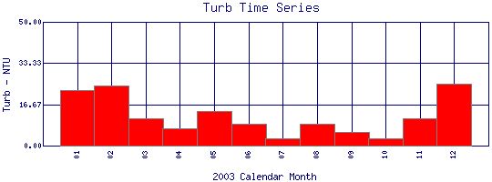Turbidity Time Series for 2003 Boulder Creek above Dry Creek |