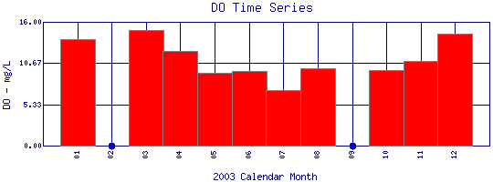 Dissolved Oxygen Time Series for 2003 Boulder Creek above WW Plant |