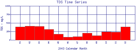 Total Dissolved Solids Time Series for 2003 Boulder Creek above WW Plant |