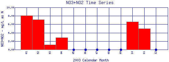Nitrate + Nitrite Time Series for 2003 Boulder Creek Below Coal Creek |