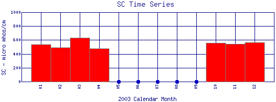 Specific Conductance Time Series for 2003 Boulder Creek Below Coal Creek |