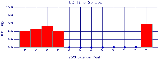 Total Organic Carbon Time Series for 2003 Boulder Creek Below Coal Creek |