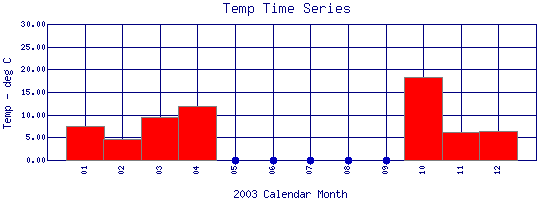 Water Temperature Time Series for 2003 Boulder Creek Below Coal Creek |