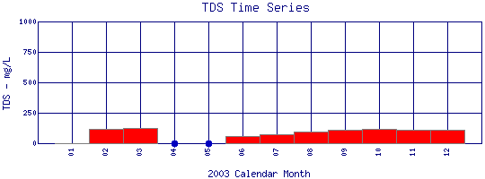 Total Dissolved Solids Time Series for 2003 North Beaver Creek @ Middle Boulder Creek |