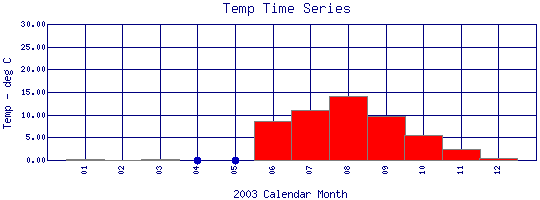 Water Temperature Time Series for 2003 North Beaver Creek @ Middle Boulder Creek |
