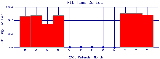 Total Alkalinity Time Series for 2003 Coal Creek Above Boulder Creek Confluence |