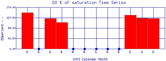 DO Percent of Saturation Time Series for 2003 Coal Creek Above Boulder Creek Confluence |