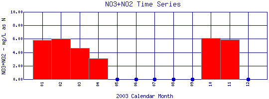 Nitrate + Nitrite Time Series for 2003 Coal Creek Above Boulder Creek Confluence |