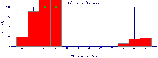 Total Suspended Solids Time Series for 2003 Coal Creek Above Boulder Creek Confluence |