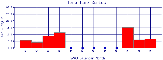 Water Temperature Time Series for 2003 Coal Creek Above Boulder Creek Confluence |